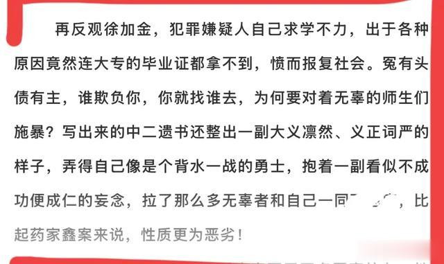 徐加金这样的人,未免太过可怕了!挂科无法毕业,是他自己的问题。可他丝毫没有反省自己的过错,反而做出了伤害无辜学弟学妹的事情。