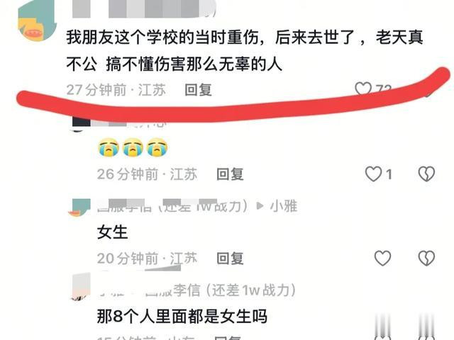 有一个,她的爸爸妈妈都是教师,她无忧无虑的长大。被父母教育的很好,温婉可爱、被刺伤之后,她被送到了医院紧急救治,可最终,仍因伤势过重离开了!