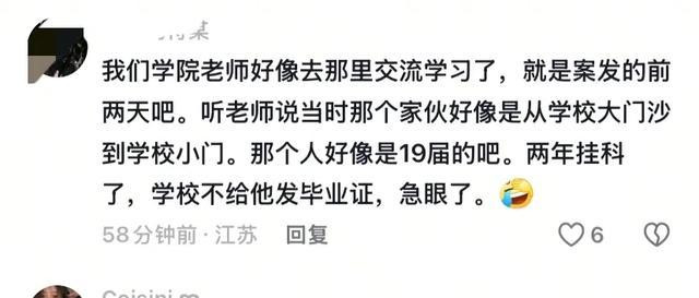 你敢想象吗?一个年仅21岁的年轻男子,只因对实习薪酬不满和考试不合格没拿到毕业证就怒气冲冲来到了学校里。